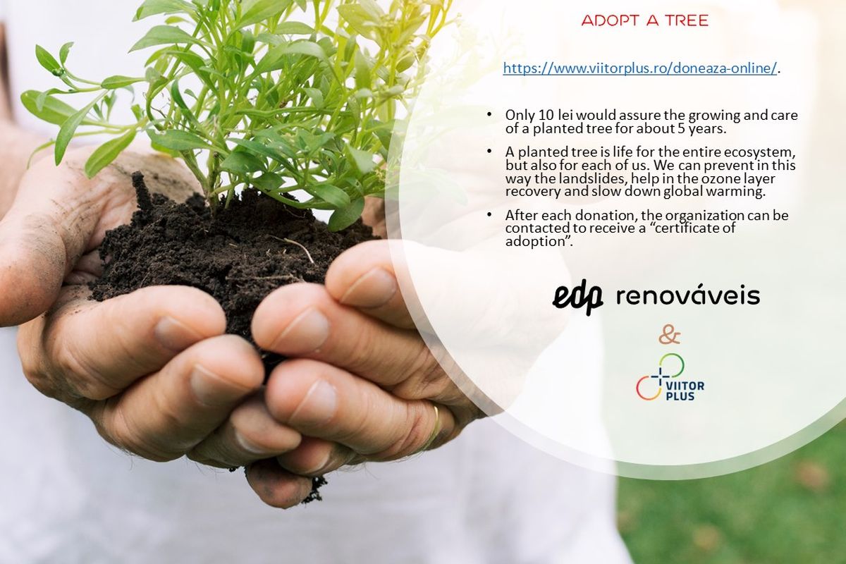 Through the project “Adopt a tree” of the organization Viitor Plus in Romania, we can contribute to the increase of the green areas in Romania.